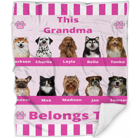 Personalized This Grandma Belongs To Dog Cat Pets Blanket 1 to 10 Pets