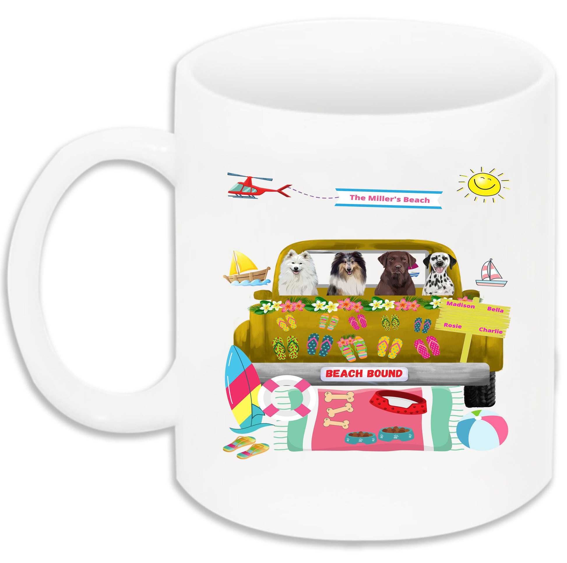 Personalized Beach Bound Dog Cat Pets Mug 1 to 5 Pets