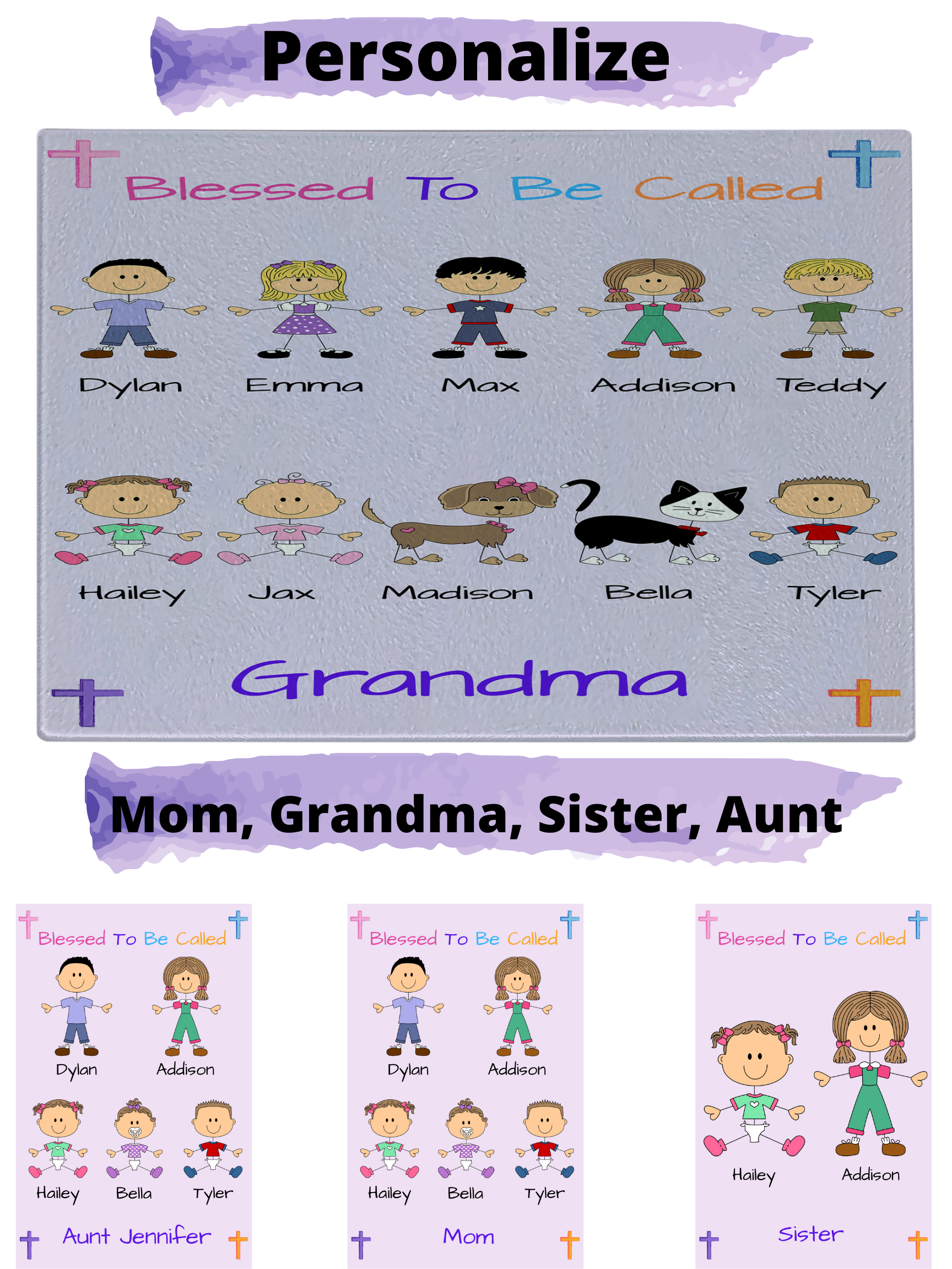 Personalized Blessed To Be Called Dog Cat Pets Grandma, Aunt, Mom, Wife or Sister Glass Cutting Board