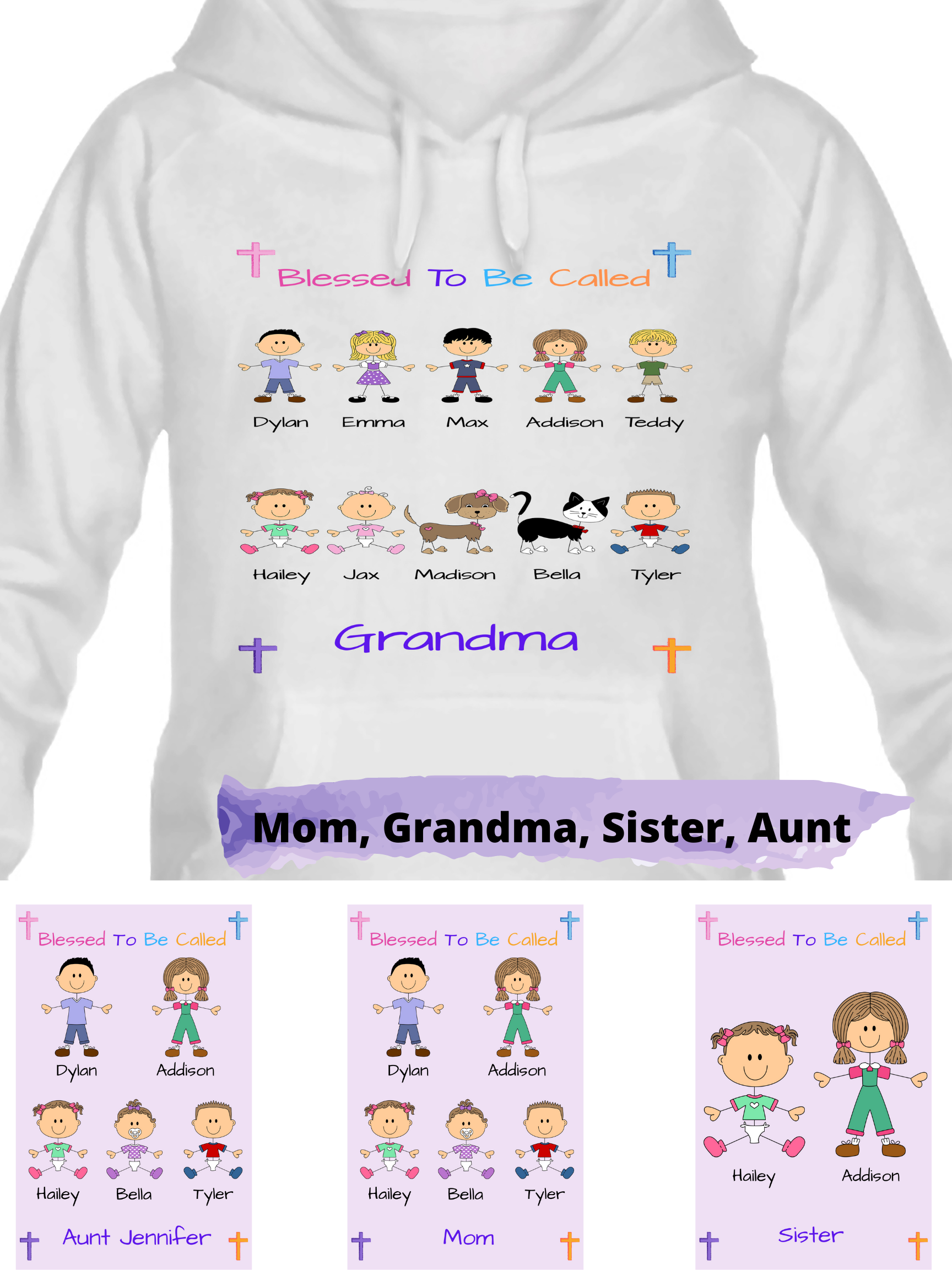 Personalized Blessed To Be Called Dog Cat Pets Grandma, Aunt, Mom, Wife or Sister Men's & Women's Hoodie