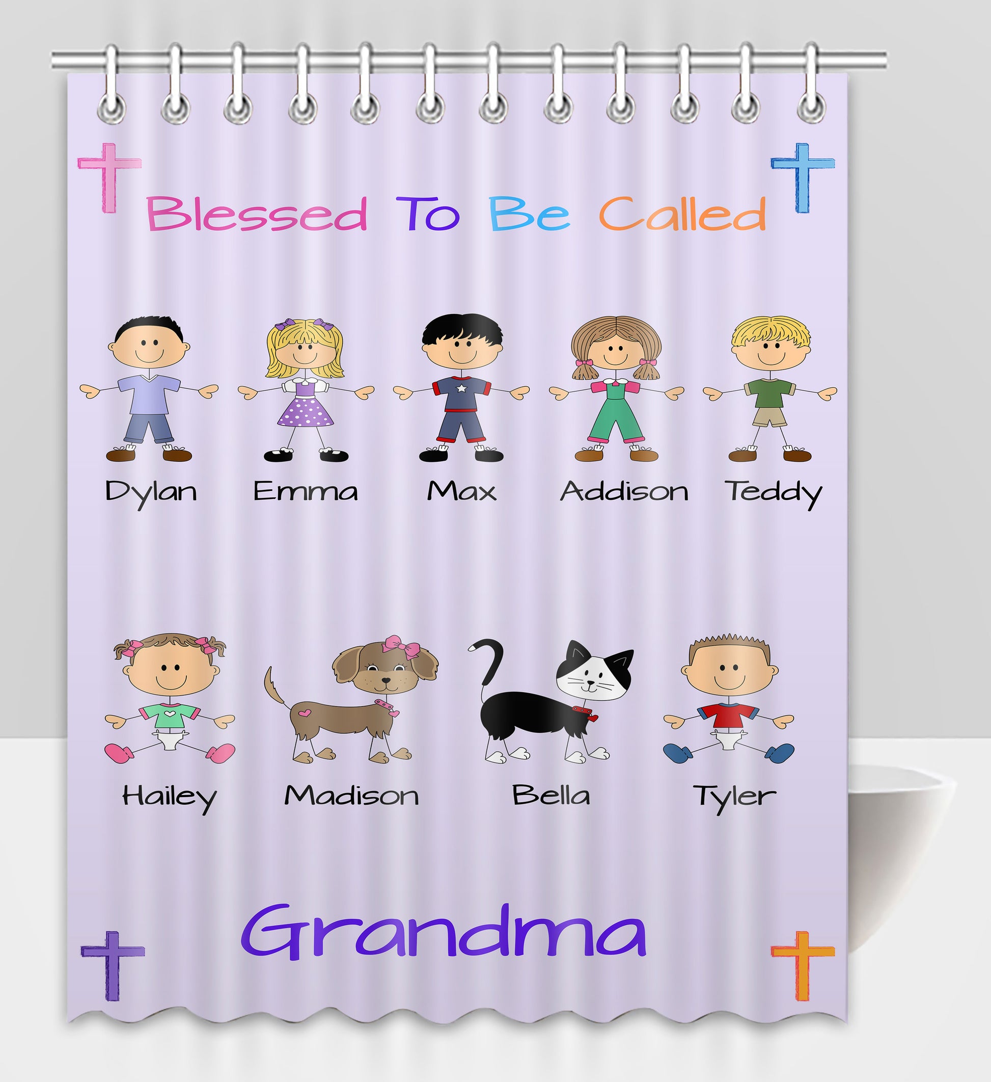 Personalized Blessed to be Called Dog Cat Pets Grandma, Aunt, Mom, Wife or Sister Shower Curtain