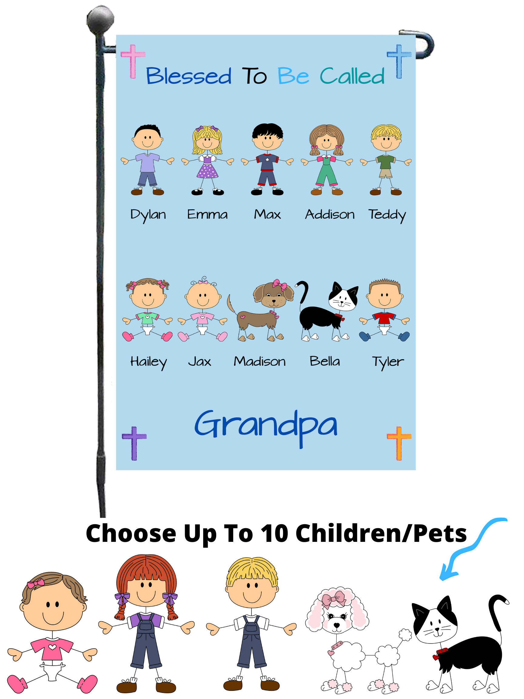 Personalized Blessed To Be Called Dog Cat Pets Grandpa, Uncle, Dad, Husband or Brother Garden Flag