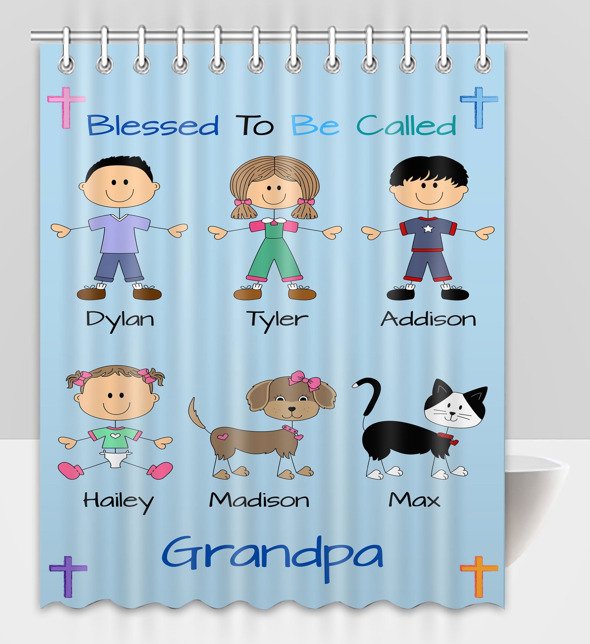 Personalized Blessed to be Called Dog Cat Pets Grandpa, Uncle, Dad, Husband or Brother Shower Curtain