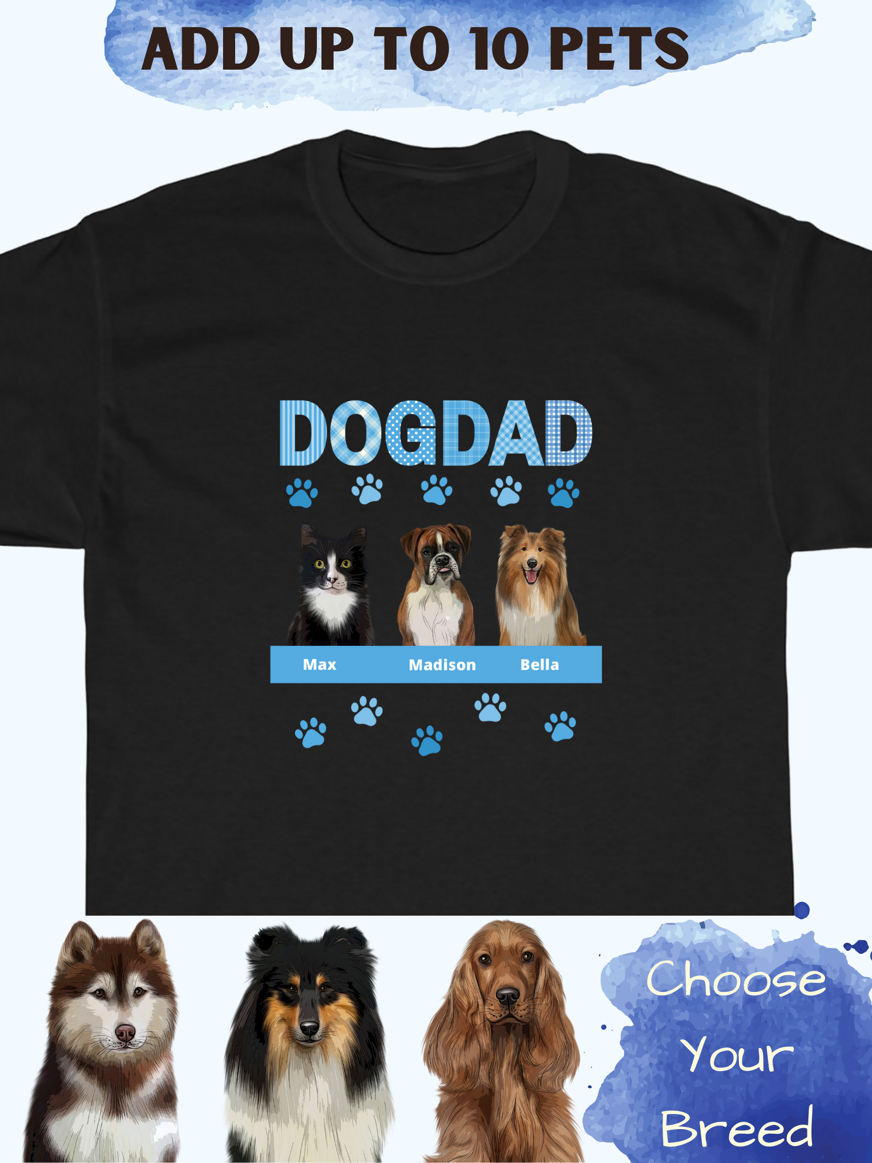 Personalized Dog Cat Pets DAD Cotton T-Shirt