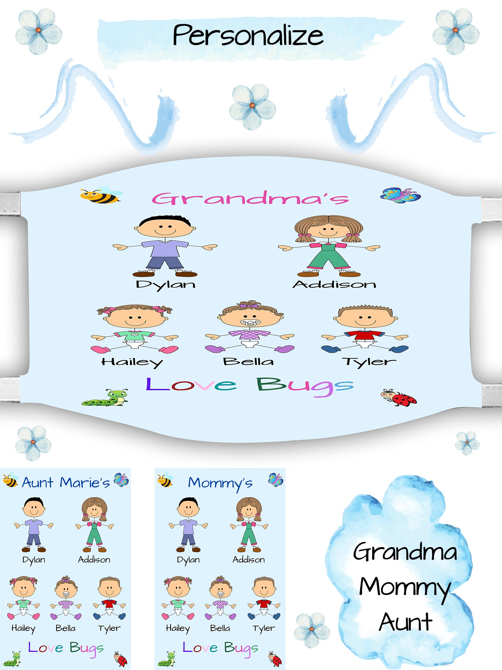 Personalized Dog Cat Pets Grandma, Aunt, Mom, Wife or Sister's Love Bugs Face Mask