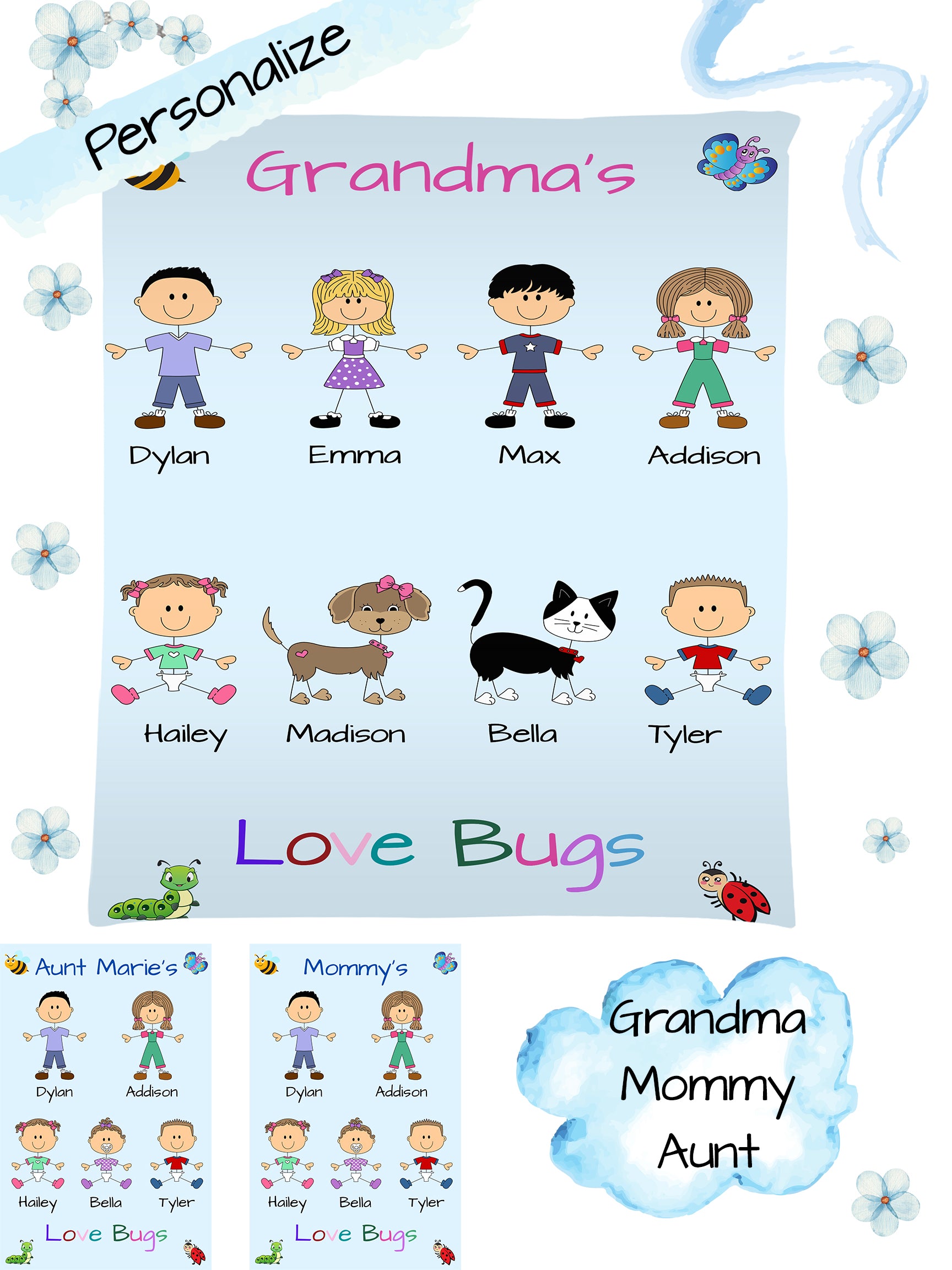 Personalized Dog Cat Pets Grandma, Aunt, Mom, Wife or Sister's Love Bugs Gift Bag