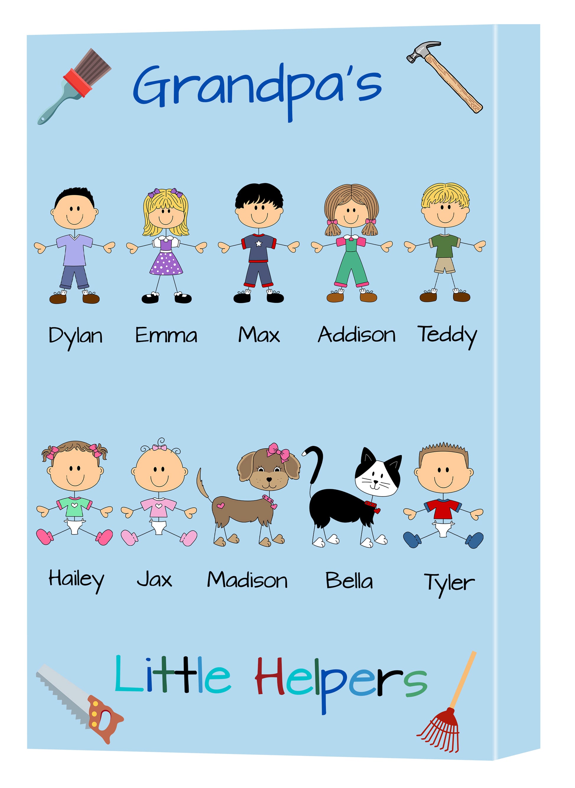 Personalized Dog Cat Pets Grandpa, Uncle, Dad, Husband or Brother's Little Helpers Canvas Print Wall Art Décor