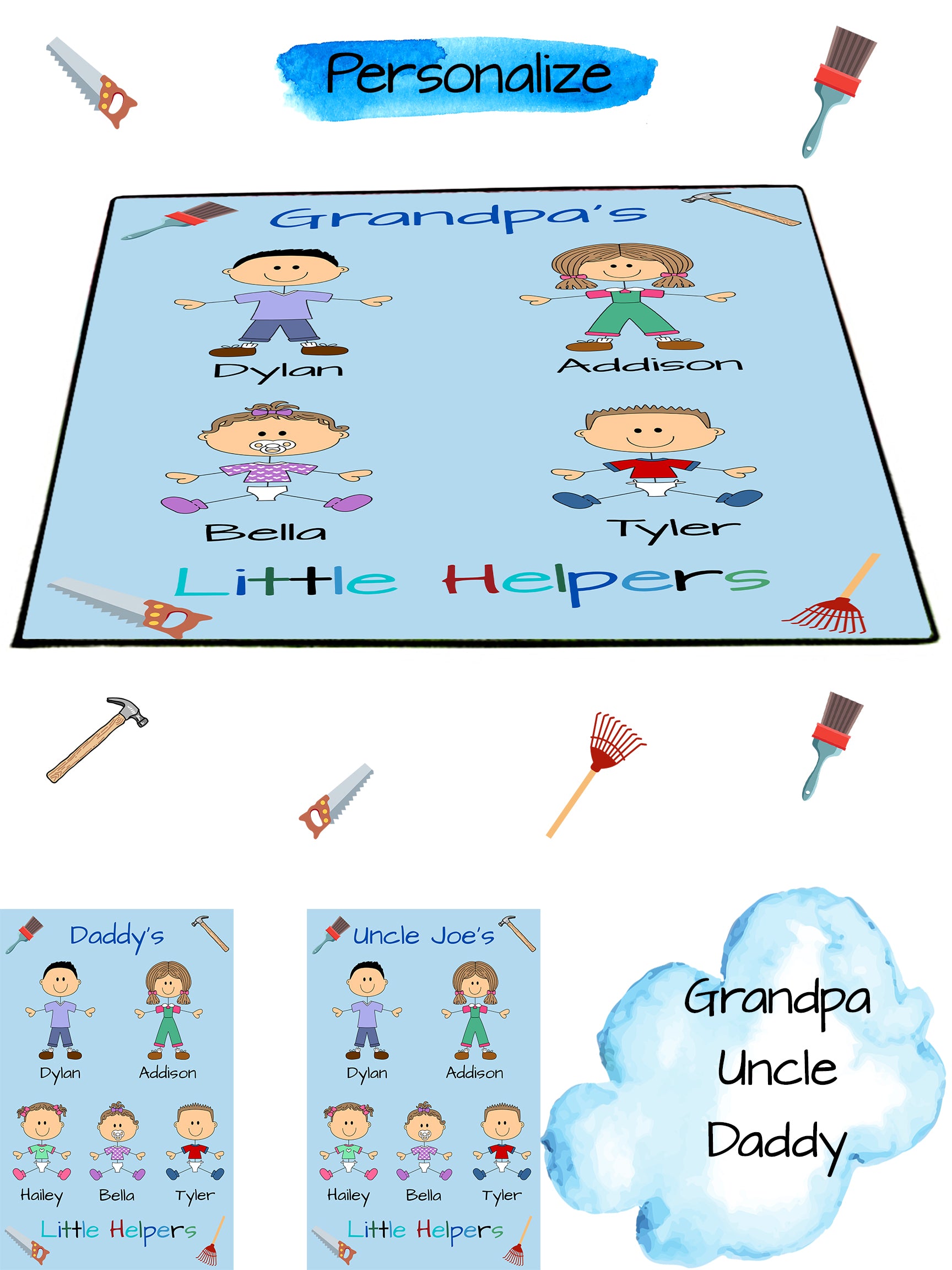 Personalized Dog Cat Pets Grandpa, Uncle, Dad, Husband or Brother's Little Helpers Floormat