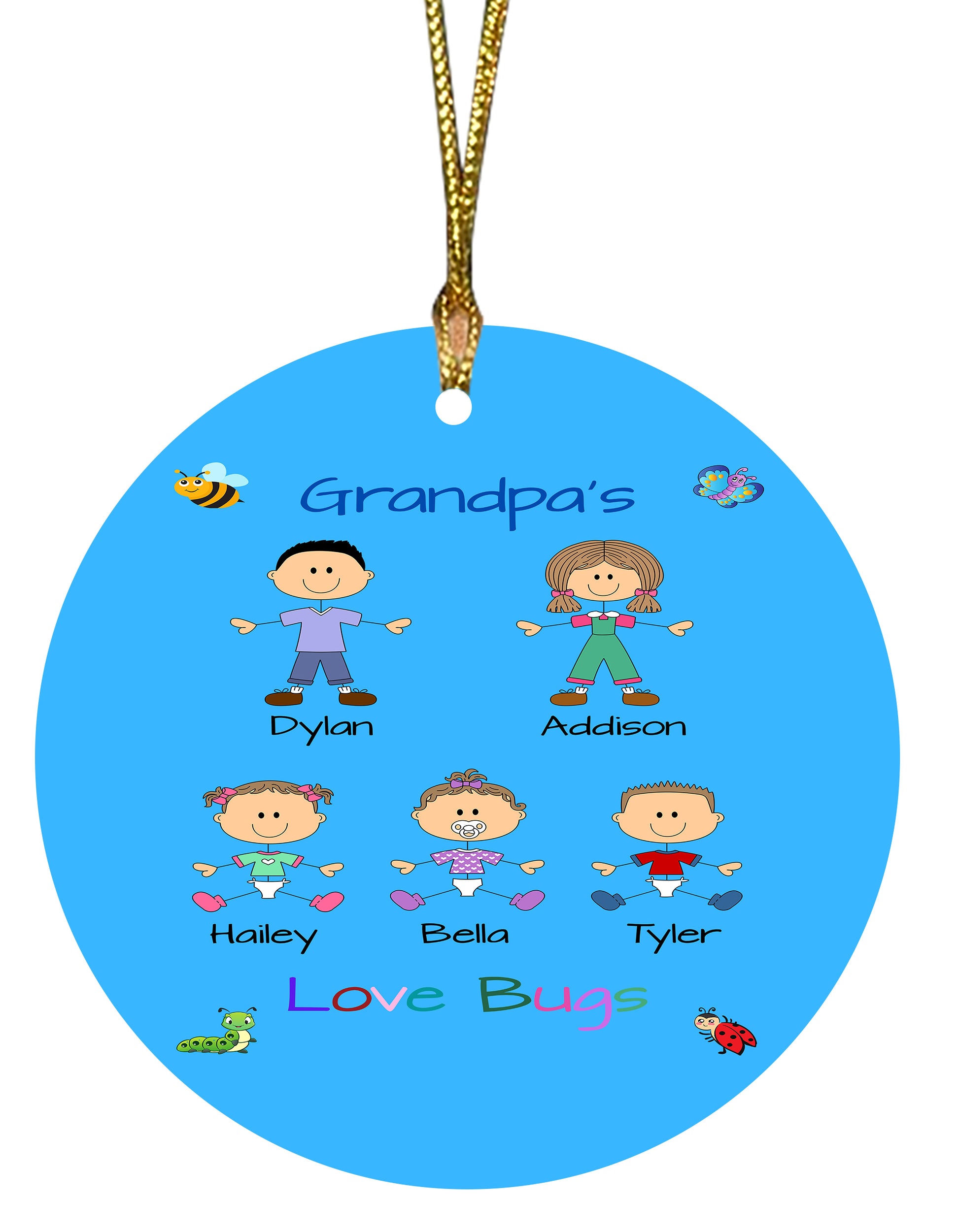 Personalized Dog Cat Pets Grandpa, Uncle, Dad, Husband or Brother's Love Bugs Round Flat Christmas Tree Ornament