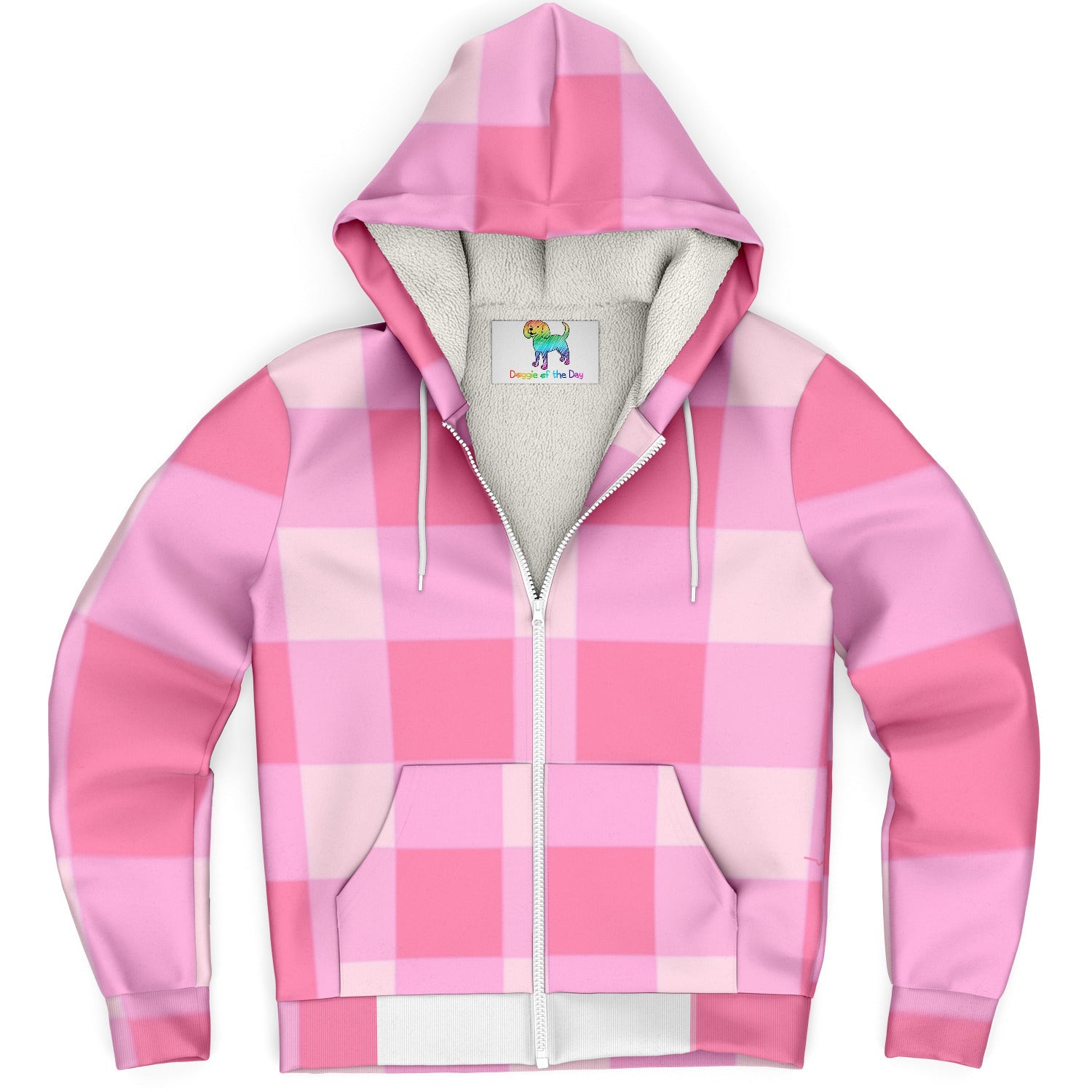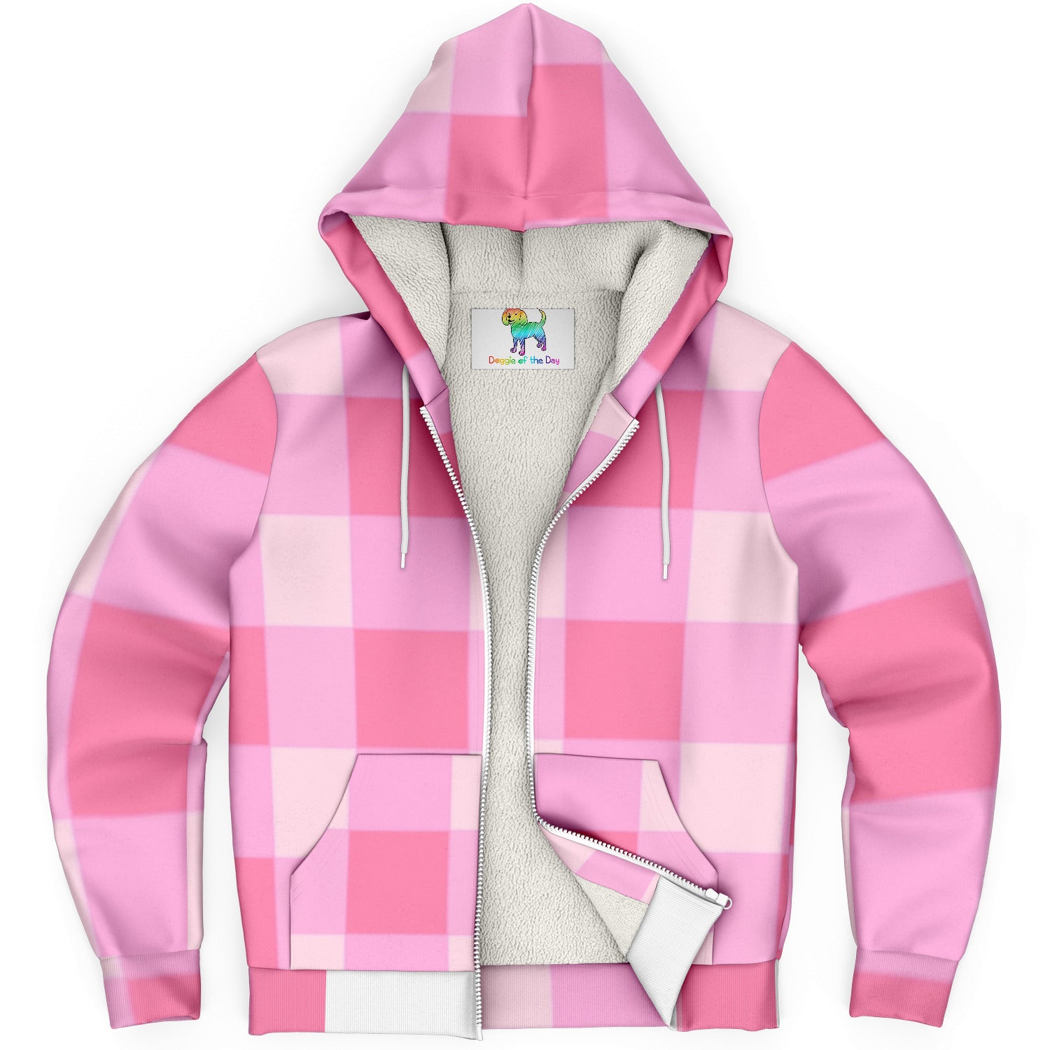 Personalized Grandma Dog Pink Gingham Microfleece Zip-Up Hoddie Hooded Lined