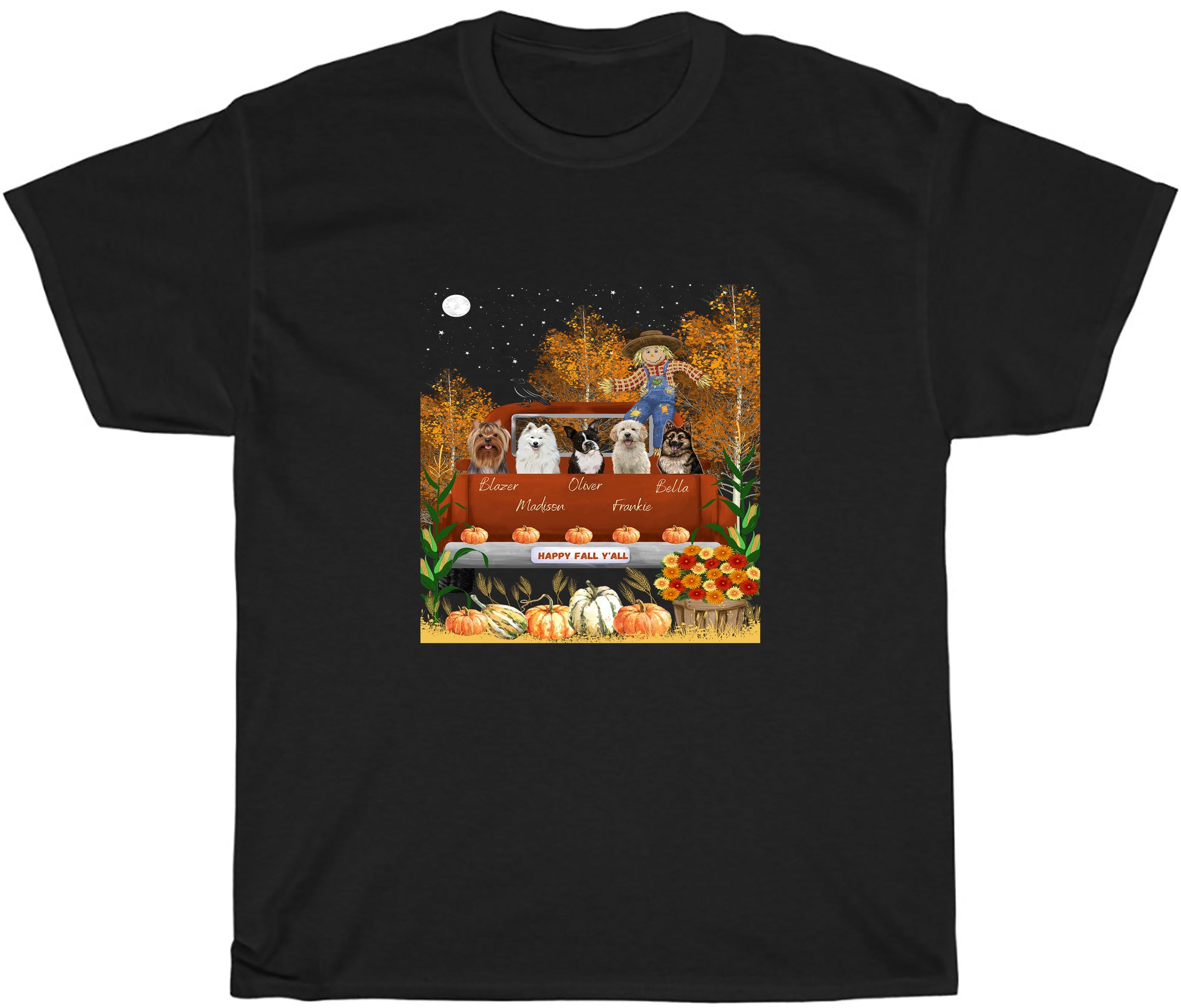 Personalized Happy Fall Y'all Dog Cat Pets T-shirt 1 to 5 Pets