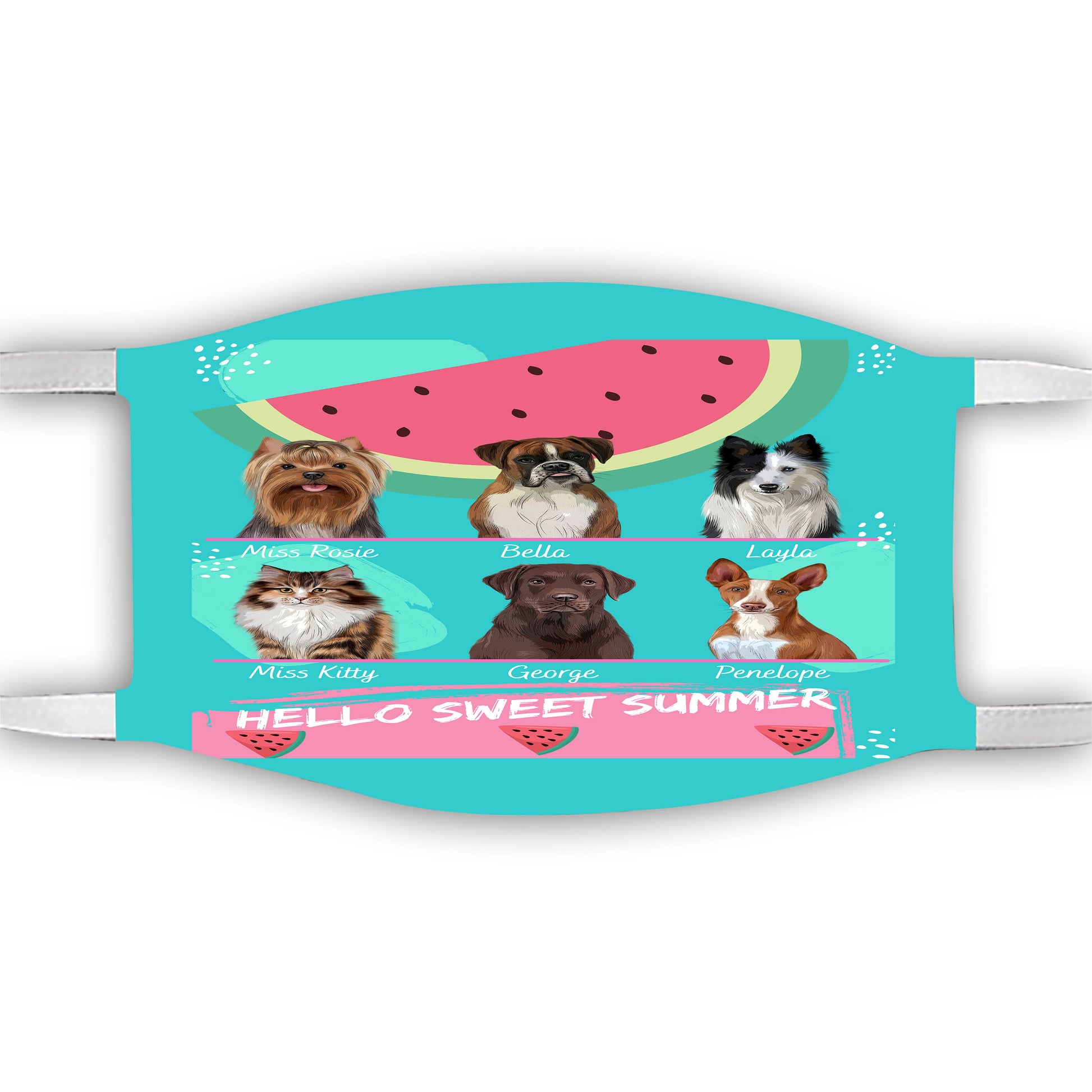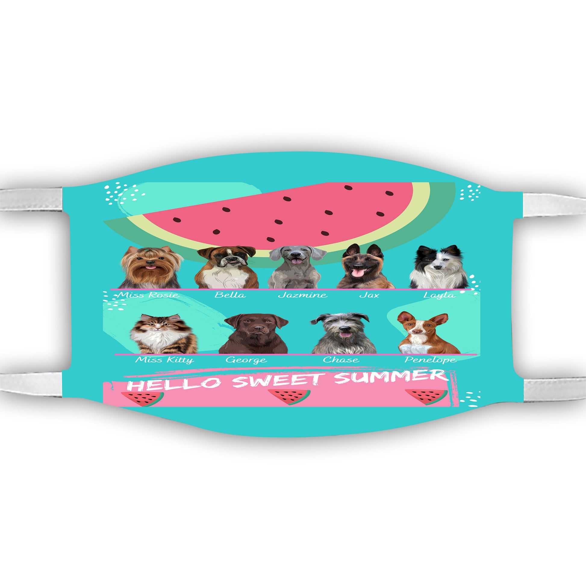 Personalized Hello Sweet Summer Watermelon Dog Cat Pets Face Mask 1-10 Pets