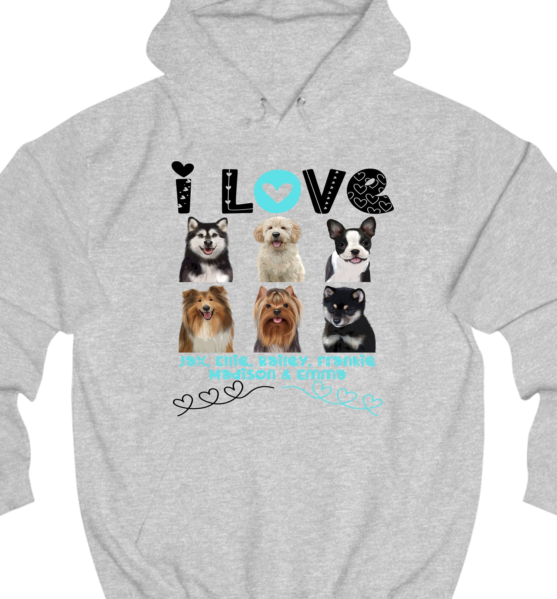 Personalized I Love Dog Cat Pets Pullover Hoodies 1 to 6 Pets